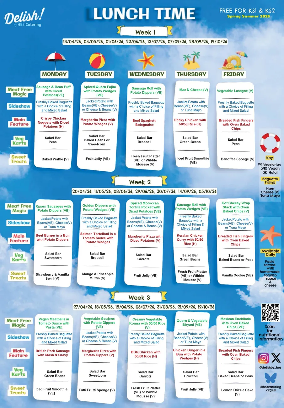 New menu week beginning 13th April 2026