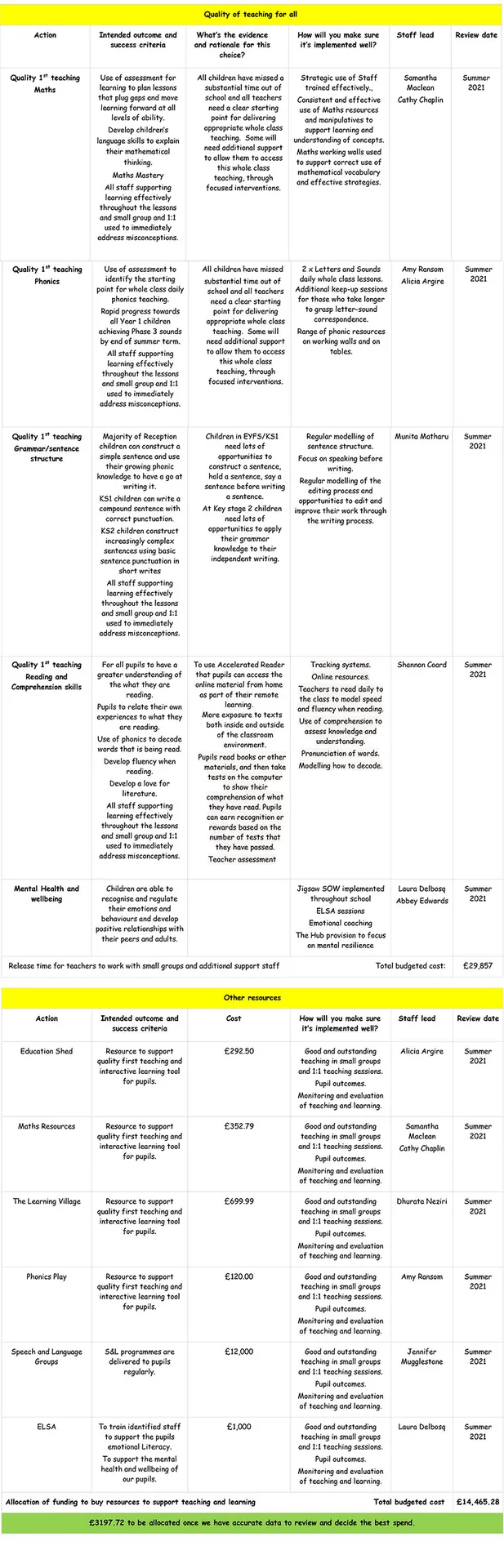 - Use evidence based research on proven strategies which work to narrow the attainment gaps and adapt these as necessary to meet the needs of our pupils.